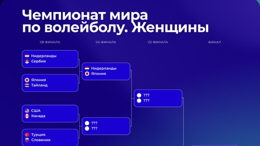🏐 Плей-офф на женском чемпионате мира по волейболу стартовал! Сборная Нидерландов обыграла Сербию, а японки выбили хозяек турнира. Матчи 1/8 финала продолжатся завтра. Изучай сетку и смотри борьбу за...
