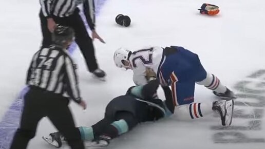 Костин снова подрался! Русский форвард завалил американца на лед, тот не смог продолжить матч