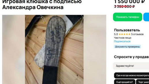 В Воронеже выставленная на продажу клюшка с подписью знаменитого хоккеиста Александра Овечкина стала доступнее почти на 2 миллиона рублей. Объявление, размещенное на онлайн-платформе «Авито», было обновлено в воскресенье, 21 сентября, и цена значительно снизилась. Уникальный предмет стал дешевле сразу на 1,8 миллиона рублей, что составляет почти 54% от предыдущей стоимости. Теперь за раритет просят 1,55 миллиона рублей. Две недели назад за клюшку предлагалось заплатить 3,35 миллиона рублей. До этого, в течение месяца, ее можно было приобрести со скидкой в 10% за 3,015 миллиона рублей...