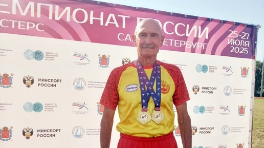 Чувашский спортсмен Виктор Семенов вернулся с двумя золотыми медалями с чемпионата России по легкой атлетике среди ветеранов в