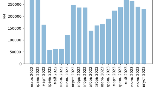 Мы видим, что наибольших значений производство достигло в январе 2022 года и составило 384 705 км...