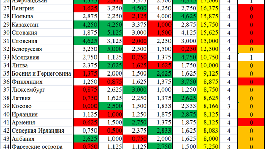 Всем доброго времени суток! Незаметно пролетели два месяца, и вот уже дело идёт к матчам плей-офф Еврокубков. Давайте кинем взгляд на таблицу коэффициентов УЕФА и попробуем прикинуть, чего нам ждать от весенних матчей наших (и не только наших) команд. Долго вникал, какие же бонусы начислил УЕФА командам. Если ориентироваться на официальную страницу УЕФА... ... то можно увидеть, что суммарные коэффициенты, которые там приведены, отличаются от той таблицы, что веду я. Попробую объяснить. В экселе всё считается довольно просто...
