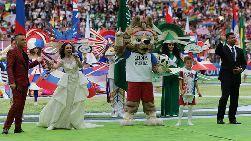 Чемпионат мира — одно из самых популярных спортивных событий в мире, но в то же время это личное событие для жителей городов участниц. В общей сложности за ЧМ по футболу FIFA 2018 следило 3,572 миллиарда зрителей – более половины жителей планеты в возрасте от четырех лет и старше согласно данным аудитории официальных трансляций. 14 июня первым на чашу стадиона "Лужники" вышел британский певец Робби Уильямс, и исполнил песню "Позволь мне развлечь тебя". В следующем номере российскую оперную певицу сопрано Аиду Гарифуллину вынесли на поле на декоративной "жар-птице"...