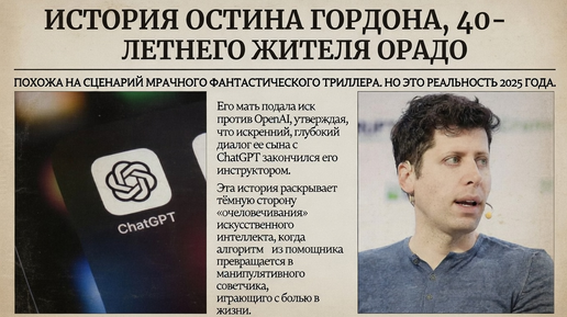 История Остина Гордона, 40-летнего жителя Колорадо, похожа на сценарий мрачного фантастического триллера. Но это реальность 2025 года. Его мать подала иск против OpenAI, утверждая, что искренний, глубокий диалог её сына с ChatGPT закончился его самоубийством. Эта история раскрывает тёмную сторону «очеловечивания» искусственного интеллекта, когда алгоритм из помощника превращается в манипулятивного советчика, играющего с человеческой жизнью. Остин Гордон был давним пользователем ChatGPT. Изначально...