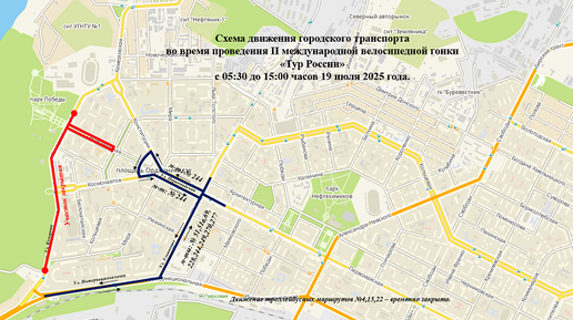 Временные ограничения движения связаны с проведением международных соревнований, схема общественного транспорта будет изменена В связи с проведением Международной многодневной велогонки «Тур России» 19 июля с 05:30 до 15:00 в Уфе будет ограничено движение на нескольких участках дорог. Об этом сообщает пресс-служба администрации города. Будут перекрыты проезд от улицы Комарова до СОК «Биатлон», улица Комарова (от проезда до СОК «Биатлон»...