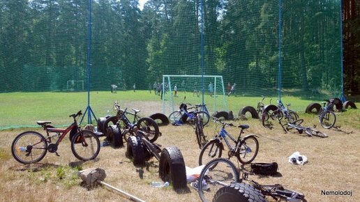 Возле футбольного поля в деревне Губино чуть ли не горой лежат велосипеды. Мальчишки местные, и из других ближних сел и деревень приехали на тренировку.