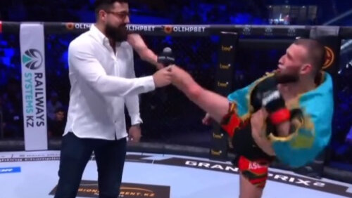 Казахстанский боец чуть не нокаутировал комментатора UFC ударом в голову. Видео