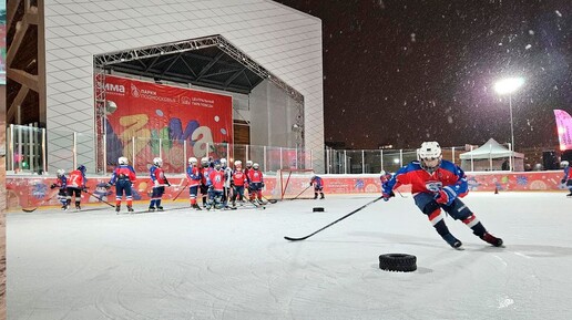 На катке в Центральный парк Победы прошла специальная хоккейная тренировка в рамках пятого сезона губернаторского проекта «Выходи во двор!». Мероприятие было посвящено поддержке и развитию детского спорта и собрало на льду как юных спортсменов, так и начинающих любителей. Участниками тренировки стали воспитанники Хоккейной академии заслуженного тренера России А. В. Бирюкова. К ребятам, которые профессионально занимаются хоккеем, присоединились и четверо любителей, среди которых были даже дети дошкольного возраста...