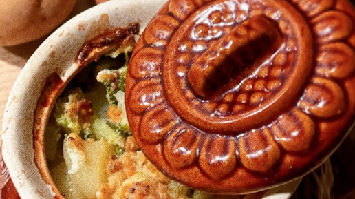 1. Морковь и картофель очистите. Нарежьте филе, морковь и картофель одинаковыми средними кубиками. Соцветия брокколи оставьте целиком. Посолите, поперчите и разложите подготовленные ингредиенты (включая соцветия брокколи) по горшочкам. 2. Разогрейте духовку до 180 °С...