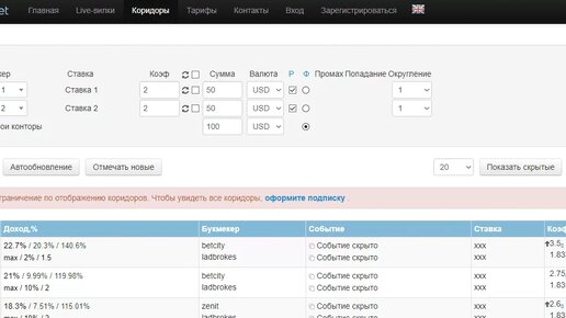 Вилки и околовилочные стратегии, к примеру, ставки на завышенные коэффициенты value betting или коридоры – алгоритмы заработка, которым отдает предпочтение около 60% всех профессиональных игроков. Относится это, в том числе, и к локальным лигам, и к непопулярным спортивным направлениям. При этом, очень многие предпочитают ставить на вилки по ходу игры, где заработок выше, чем в доматче. Ставить в режиме лайв сложнее, чем в прематче – «живут» арбитражные ситуации буквально секунды (иногда доходит до 20-30 минут, но это редкость) и действовать нужно быстро...