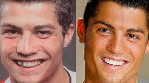 Криштиану Роналду Над его улыбкой довольно сильно поработали стоматологи. Свои собственные зубы у Роналду в молодости были несовершенны: Что бы решить данную проблему были использованы виниры, таким образом удалось изменить форму зубов и цвет эмали. Также здесь указано, что у него были удалены зубы мудрости, поставлены брекеты, реставрация композитами имплантация и установка коронок. Майк Тайсон Многие боксёры ставили себе золотые зубы, чтобы отметить свои успехи после боя. Майк Тайсон стал не исключением...