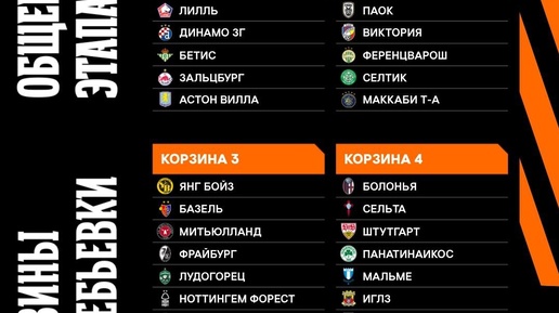 Взгляд болельщика 4 месяца назадПодписатьсяКорзины для жеребьевки общего этапа Лиги Европы и Лиги КонференцийКорзины для жеребьевки общего этапа Лиги Европы и Лиги Конференций