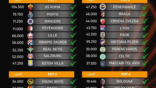 Все 36 участников корзин Лиги Европы-2025/26 определились: жеребьевка начнется сегодня в 14:00 по московскому времени