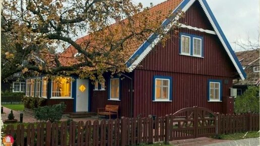 Дом двухэтажный, на первом этаже в просторном помещении объединили гостиную с камином, телевизором, мягкими диванчиками и двумя круглыми столами, расположенными рядом, и столовую зону. Здесь установили белый кухонный гарнитур без верхних шкафов с деревянной столешницей. В центре помещения поставили круглый деревянный стол с белыми стульями, слева разместили оригинальный буфет из дерева. Оригинально оформили подсветку в навесных полках, над обеденным столом и рабочей зоной повесели дополнительные осветительные приборы, окно украсили занавесками голубого цвета...