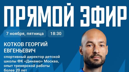 Прямой эфир с Георгием Евгеньевичем Котковым! 📹 Спортивный директор школы «Динамо» подведет итоги осенних сборов и турниров и обозначит вектор развития на будущее👇 Ждём вас 7 ноября (пятница) в 18:30...