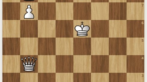 Автор задачи В. Коваленко, 1968 год. Белой пешке всего 1 ход до ферзя. Белые ставят мат в 2 хода. Решение смотрите далее в галерее.