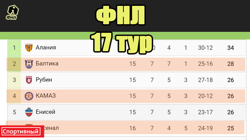 Футбол России: ФНЛ. Результаты. Таблица. Расписание. 17 тур.