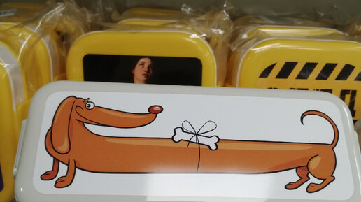 На полках появились разноцветные ланч-боксы и кружки с крышками со смешными надписями и рисунками. Такой вот длинный двойной ланч-бокс с таксой. Понравился. Даже захотелось купить хотя мне и не надо. Все ланч-боксы по 249 р. Хотите с совушкой, а хотите с котиками. А может быть вам понравится этот забавный щенок. Или эта кошечка, спящая на белом коврике...