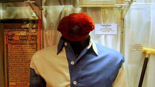 Немного истории. «Ливерпуль» мощно ассоциируется с красным цветом, а «Эвертон» – с синим. Связь реально крепкая – когда «Ливерпуль» выпускает форму с синими или голубыми вставками (с этим разберемся дальше), болельщики ругаются, им не нравятся отсылки к конкурентам. При этом первая форма «Ливерпуля» была сине-белой (сейчас хранится в клубном музее) и выглядела так: До конца не ясно, в каком оттенке синего цвета «Ливерпуль» играл следующие несколько лет: королевском синем или голубом. В музее хранится...
