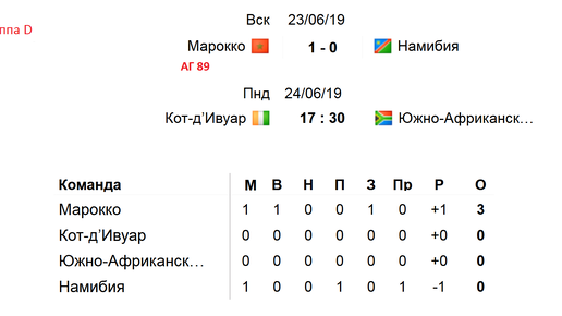 Наконец-то сегодня стартовал перенесённый Кубок Африканских Наций. 50-я сборная ФИФА Камерун прогнозируемо обыграла 60-ю команду рейтинга Буркина Фасо (2:1). Эфиопия (№137), с 12-й минуты играла в меньшинстве, и в итоге проиграла Кабо – Верде (№73). Турнирная таблица группы «А» после 1-го тура. Камерун имеет 3 очка. У Кабо – Верде также 3 очка. Эфиопия и Буркина – Фасо без очков. Напомню, из 6 групп выходят в игры на вылет две первые команды и 4 лучших обладателя третьих мест...