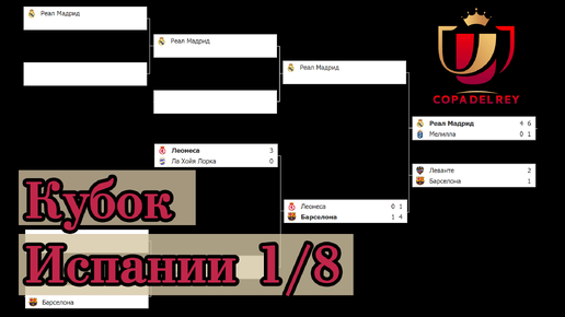 Кубок Испании по футболу (Кубок Короля). Ответные игры. Результаты 1/8. Кто вышел в ¼? Бомбардиры.
