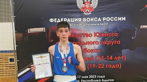 Первенство ЮФО среди юношей 13-14 лет завершилось в Майкопе Право участвовать на этих престижных соревнованиях Александр Кулумбегов добился, став победителем первенства Ростовской области. В шахтинской федерации бокса выступление юного спортсмена оценили как весьма успешное, ведь для него это был первый турнир подобного уровня. Кстати, помимо Александра участвовать в первенстве ЮФО должен был еще один боксер из нашего города — Ярослав Крачковский...