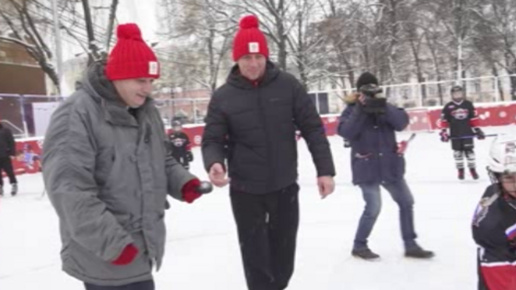 А накануне губернатор побывал на открытии нового бесплатного катка. Первыми на лед в курском парке Пионеров вышли юные хоккеисты спортивной школы "Арена". Смотрите сюжет. — Ну что, пусть победит сильнейший?— Все, молодцы. Вбрасывание шайбы. Важный элемент в хоккее. Быстрая реакция дает преимущество в игре. Юных спортсменов с первым матчем под открытым небом поздравил Александр Хинштейн. Александр Хинштейн, губернатор Курской области: — Надеюсь, и рассчитываю, что у нас всегда будет многолюдно. Мальчишки и девочноки, и те, кто постарше будут приходить кататься...