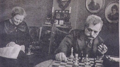 Каждый из Вас слышал про Эмануила Ласкера. Это был весьма интересный человек и сильный шахматист. В этой статье мы расскажем коротенькую, но забавную историю, связанную с ним и его женой, а чуть ниже приведем шахматную задачу. Фрау Марта - супруга Ласкера, часто ездила с ним на турниры, поддерживала его. В шахматах она совсем не разбиралась, но у нее был "специальный метод" определения того, что сейчас происходит на доске в шахматной партии у мужа. К слову сказать, в те времена разрешалось присутствовать в турнирном зале посторонним, и даже заниматься посторонними вещами...