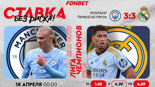 Феерической ничьей 3:3 на «Сантьяго Бернабеу» «Манчестер Сити» и «Реал» показали, почему их пару называли досрочным финалом Лиги чемпионов. В ответной встрече любая ошибка может оказаться фатальной, но FONBET даёт право на неё своим клиентам с акцией «Ставка без риска». Зарегистрируйтесь по ссылке, подтвердите участие в акции на тематическом баннере, поставьте на любой матч 1/4 финала еврокубков минимум 1000 тенге с коэффициентом от 2.00 – и в случае проигрыша полная сумма ставки до 500 000 тенге...