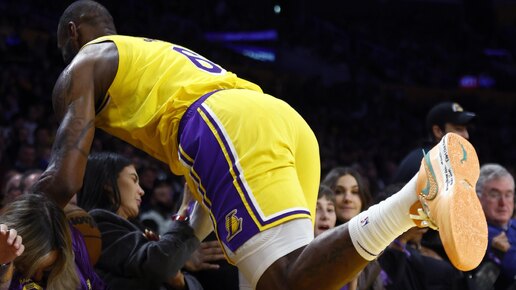 Лидер «Лос-Анджелес Лейкерс» Леброн Джеймс во время матча НБА с «Лос-Анджелес Клипперс» в погоне за мячом влетел в зрителей в первом ряду. Падая, 38-летний баскетболист влетел в двух женщин и, перевалившись через кресла, оказался на полу. Инцидент произошел в третьей четверти матча, в котором «Лейкерс» в итоге уступил со счетом 115:133...