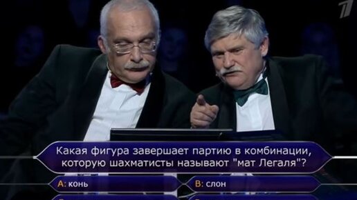 «Знание – сила!» Фрэнсис БЭКОН, английский мыслитель, философ, политик. 22 декабря 2018 года… По Первому каналу транслируется очередной выпуск интеллектуального телешоу «Кто хочет стать миллионером». Игра достигла настоящего накала: знатоки Александр Друзь и Виктор Сиднев успешно прошли предыдущие этапы и получили реальный шанс стать обладателями главного денежного приза. Им осталось ответить на заключительный 15-й вопрос ведущего телевизионной игры Дмитрия Диброва: «Какая фигура завершает партию в комбинации, которую шахматисты называют «мат Легаля?»...