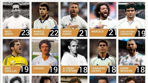 Приветствую болельщиков Реал Мадрида и любителей футбола! Предлагаю Вашему вниманию ознакомиться с легендарными игроками кто выиграл наибольшое количество титулов в истории «Реал Мадрида». Ниже список самых титулованных игроков «Реал Мадрида»: 1. Франсиско Хенто: 23 трофеев; 2. Мануэль Санчис: 22 трофея; 3. Серхио Рамос и Марсело: 21 трофей; 4...