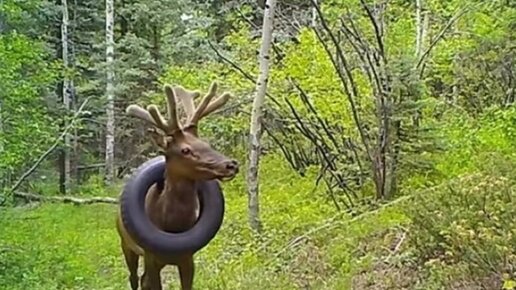 Несколько лет лесной олень ходил с покрышкой на шее, теряя вес и загибаясь от тяжести, пока не попал на фотоловушки