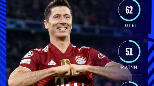 Левандовски забил 69 голов в 2021 году - у него разрыв в 20 голов по сравнению с остальными футболистами