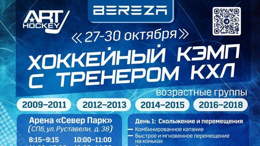 ‼️ВНИМАНИЕ, Санкт-Петербург ‼️ Стартует набор участников на уникальный хоккейный кэмп под руководством Артёма Оленева — тренера игроков КХЛ и НХЛ. Программа рассчитана на четыре возраста и проходит в формате интенсивного мастер-класса. Количество мест ограничено. Успей подать заявку - переходите по QR-коду из афиши или по ссылке https://forms...