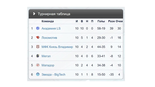 💫 Межрегиональная мини-футбольная лига 2024-25 «Золотое кольцо» 📅 Результаты сегодняшних матчей и итоговая турнирная таблица МФК КНЯЗЬ ВЛАДИМИР — АКАДЕМИЯ LS 3:9 МАТАДОР — АКАДЕМИЯ LS 3:6 МФК КНЯЗЬ ВЛАДИМИР — МАТАДОР 3:3 ФК Матадор [club200633920|ЛФК «Академия LS»] [#alias|mini-football76...