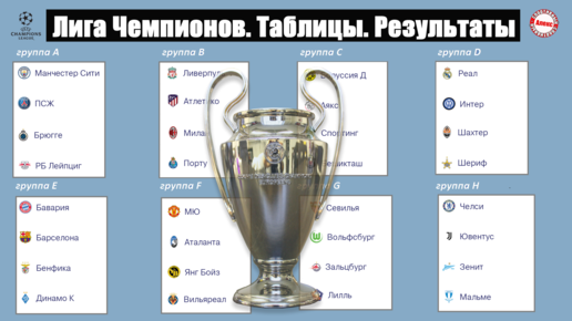 Лига Чемпионов (21/22). Результаты 3 тура, расписание, таблицы групп E, F, G, H.