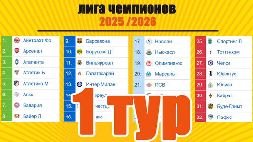 Лига Чемпионов. 1 тур. Результаты, расписание, таблица.