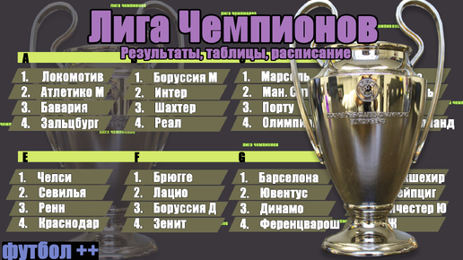 Лига Чемпионов 20/21. 1 тур. Итоги среды, расписание, таблица.