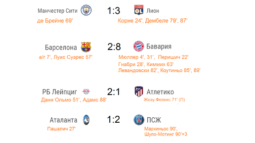 Лига Чемпионов 2019/20. Кто вышел в ½ финала? Результаты. Расписание.