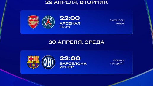 Полуфиналы Лиги чемпионов. Здесь лучшие из лучших 🔥 Уже завтра последим за встречей «Арсенала» и «ПСЖ». В среду – «Барса» против «Интера». 😄 Смотри еврокубки в Okko: https://okko.tv/s/hz5