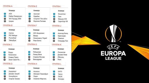 Футбол. Лига Европы 2018 – 2019. 5 тур. Группы. Результаты. Таблицы. Расписание.