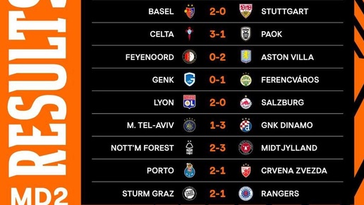 🇪🇺🇪🇺 Результаты всех сыгранных вчерашних матчей Лиги Европы и Лиги конференций. ⚽️ Подписывайтесь на нас в MAX