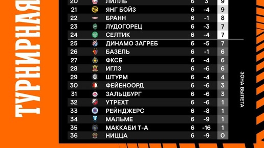 Турнирные таблицы общего этапа Лиги Европы и Лиги Конференций после матчей четверга