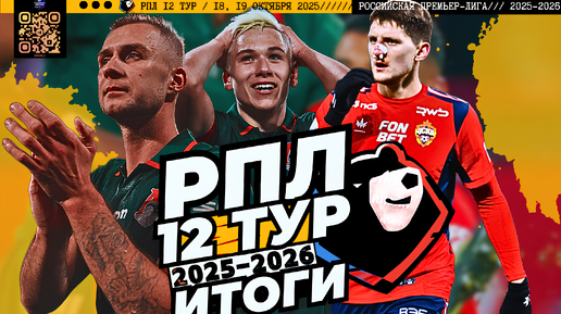 Футбол: обзор и турнирная таблица 12-го тура Российской Премьер-лиги сезона 2025/26