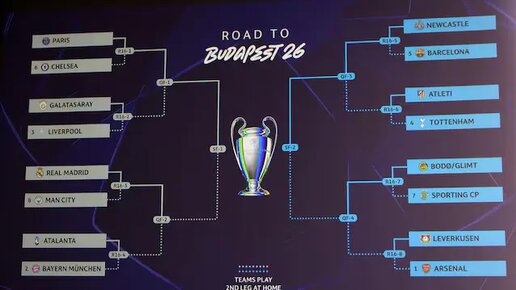 В штаб-квартире УЕФА состоялась жеребьёвка 1/8 финала Лига чемпионов УЕФА сезона-2025/26 — и сетка плей-офф получилась по-настоящему огненной! 📅 Первые матчи — 10–11 марта, ответные — 17–18 марта. Жеребьёвка определила турнирный путь до финала, и возможные пары 1/4 финала уже вызывают мурашки: Особенно выделяется потенциальная дуэль из блока Реал — Сити — Бавария — Аталанта — любой вариант здесь тянет на афишу финала...