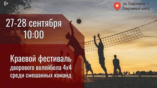 🏐 Уважаемые любители волейбола! Новый наступивший волейбольный сезон начинается проведением в Лесозаводске Краевого Фестиваля впервые в дисциплине «дворовый волейбол»! Соревнования пройдут в формате 4x4 среди смешанных команд юношей и девушек 2011-2013 годов рождения! Ждём Вас 27 сентября с 10-00 на спортивных площадках спортивного комплекса по адресу: г...
