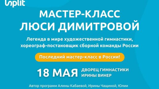 Мастер-класс от легенды в мире художественной гимнастики, хореографа-постановщика сборной команды России Люси Димитровой🥇 🔥Осталось всего 10 мест! 📆Дата: 18 мая 2025 г. с 10:00 до 15:00 📍Место проведения: Дворец гимнастики Ирины Винер, Олимпийский комплекс «Лужники» 🔥Последний мастер-класс Люси Димитровой в России! Возможность перенять знания и опыт эксперта, который более 30 лет работал со сборной командой России, а также с командами Болгарии, Испании, Канады! Автор программ Алины Кабаевой,...