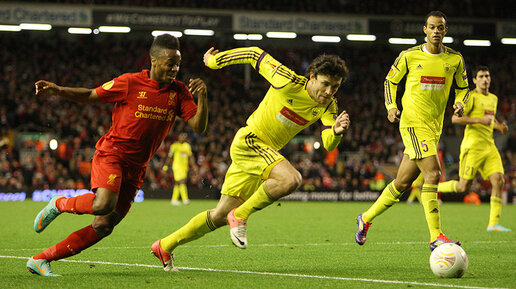 Матч группового этапа ЛЕ. Ливерпуль - Анжи Из-за не очень удачных предыдущих сезонов, в сезоне 2012-2013 годов Россия теряет одно место в Лиге Чемпионов, но общее количество представителей в еврокубках остается тем-же...