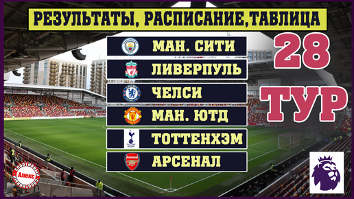 Чемпионат Англии по футболу. 28 тур. Результаты. Расписание. Таблицы АПЛ, Серии А, Ла Лиги, Бундеслиги.